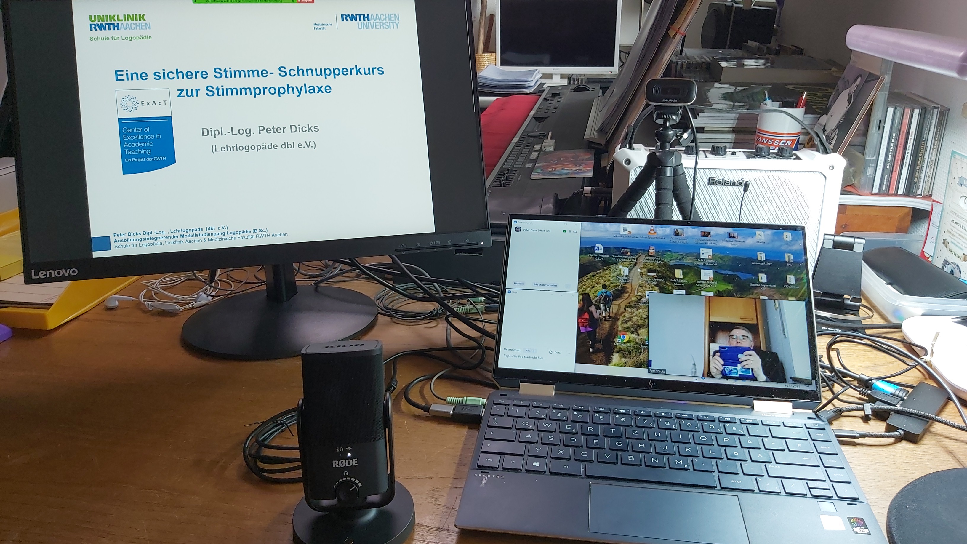 Seit 2018 biete ich mein Seminar oder Webinar „Eine sichere Stimme“ mehrfach im Jahr als eintägige Veranstaltung im RWTH-Lehrinstitut ExAct (Excellent Academic Teaching) an.